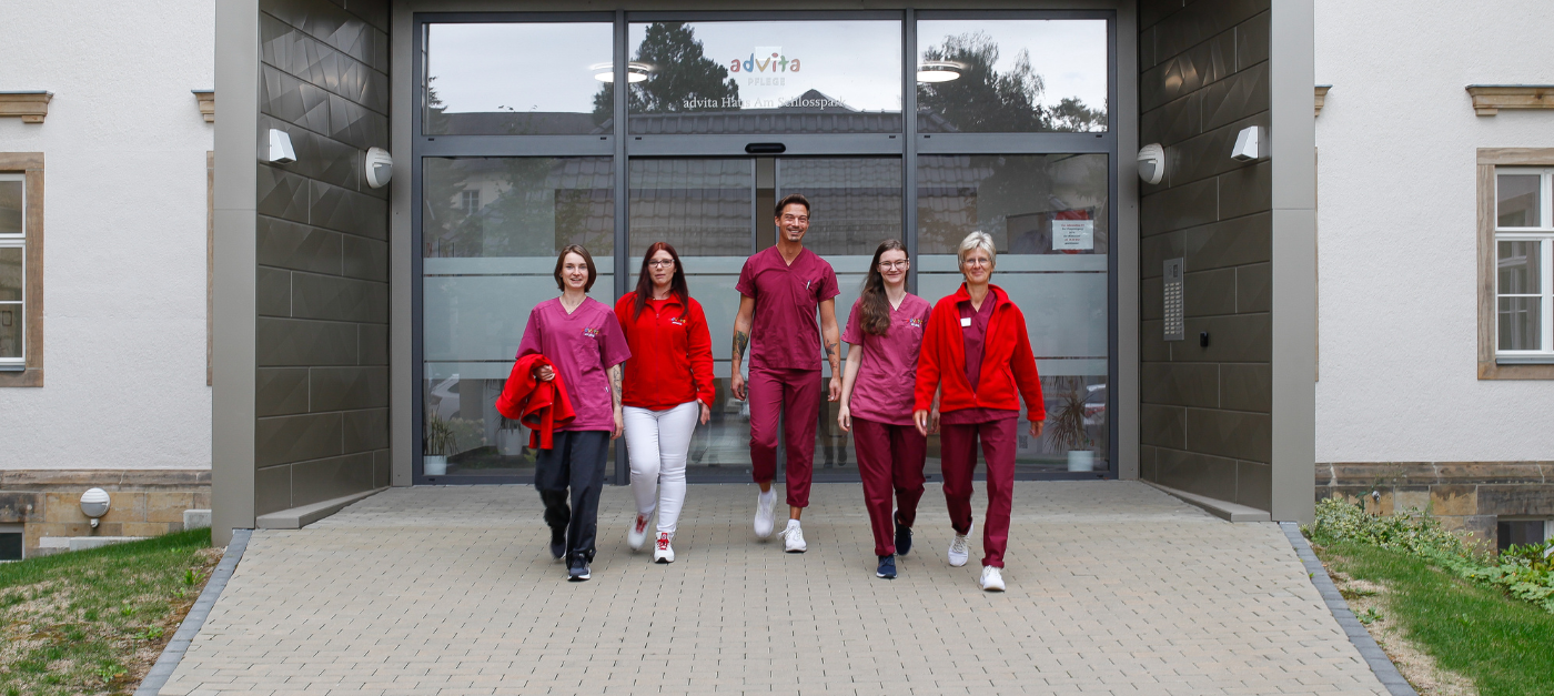 In unseren advita Häusern versorgen wir unsere Bewohner wie auf einer ambulanten Tour in ihren eigenen Wohnungen oder WG-Zimmern. Weil diese Zimmer und Wohnungen alle im advita Haus sind, haben wir natürlich keine Probleme mit Staus, Parkplätzen oder schlechtem Wetter.